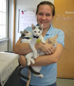 For that reason, Dr. Miranda Spindel, Senior Director of Shelter Medicine for the ASPCA, recommends “all in, all out” – that is, instead of immediately adding new cats to replace those adopted, wait until all cats in the room have been adopted (or all but one, since the last cat can then be moved to individual housing). After thoroughly cleaning and disinfecting the room, bring in an entirely new group of cats.